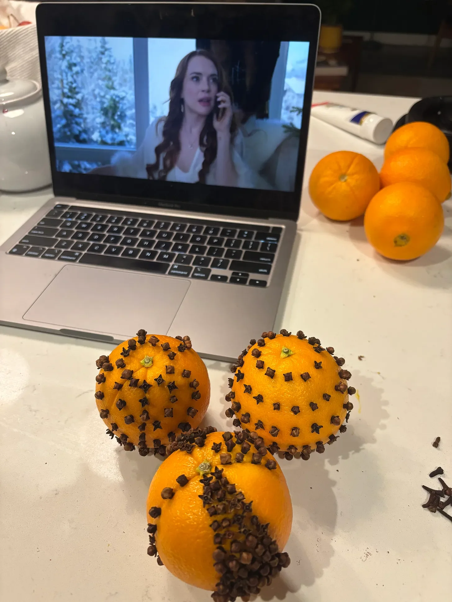 Photo by me! Image showing pomanders and Lindsey Lohan in Falling for Christmas.